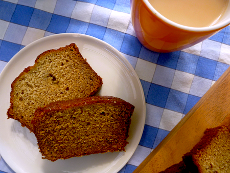 My food processor isn’t large enough to make two loaves at the same time, so if I’m baking two loaves (which I usually do – eat one, and freeze the other), I just process them one after the other without washing the processor. While this recipe is practically perfect, I add some ground cardamom, just because I really love cardamom in banana bread. Like any kind of banana cake, the only real secret is to use the most disgustingly over-ripe bananas you can find and magically turn them into manna from heaven.