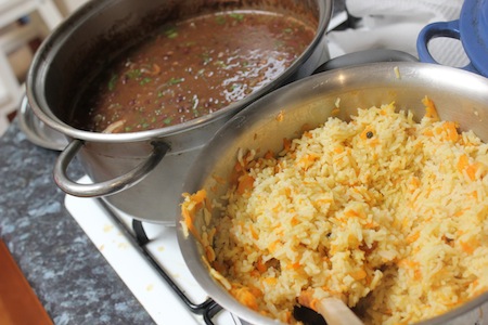 The secret to a delicious pot of black beans is to simmer them slowly for at least an hour until tender. Then you add the fried onion, garlic, salt, herbs and spices and simmer again until you have deliciously thick aromatic gravy. The black beans will keep well in the refrigerator for three to four days but they also freeze well. So there’s no excuse for you not to make a big healthy pot of them. Black Beans are good as a week-night meal with plain rice but these beans are too good to keep for the everyday – dress them up with a Turkish carrot pilaf, some salads and sides and you really have a vegetarian feast.