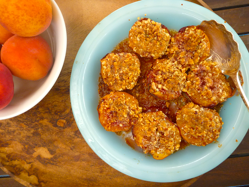 It might seem too soon after such a traumatic heat event to think about baking peaches but the summer is long and the best of our peach season is short. In the relative cool before the next heat wave hits, there’s time to grab some peaches and bake them. These baked peaches are like individual peach crumbles, don’t wait for a dinner party or special event to make them, because they are so quick and easy they make a perfect weekday dessert. I baked these peaches for afternoon tea and they just the thing to kick back and enjoy while watching a bit of heat-soaked tennis at the Australian Open.