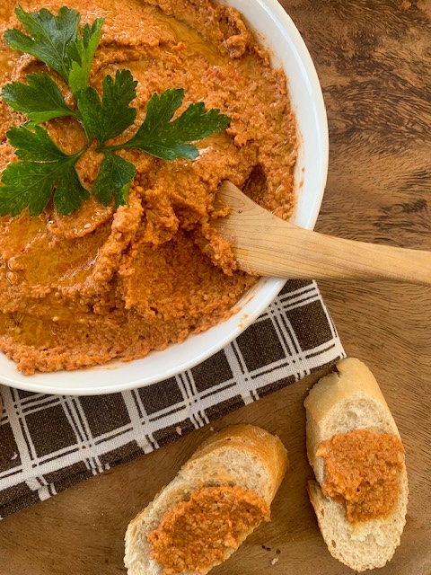 Muhammara has now ousted my smokey baba ghanoush as a family favorite at family celebrations and gatherings. It’s also delicious eaten on toast for breakfast the next day. ( It’s a good idea to keep some muhammara aside if you want any for breakfast I find whatever I put out at parties gets completely devoured.) You can also mix equal amounts of labneh (drained yoghurt) with muhammara to make a yoghurt dip. I’ve never actually tried this – I love muhammara too much as it is and have never felt the desire to mess around with it.