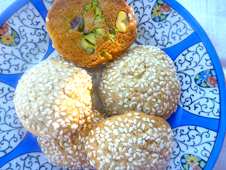 I made these on the Thursday and they were such a hit with my family that I made another batch the next day to take to my nephew’s wife who was in hospital with her first baby. With the wholesome combination of sesame seeds, pistachios and a not overly sweet dough, they seemed like a very healthy offering for a new nursing mother. Be warned – these cookies are dangerously addictive, before you know it, you’ve eaten three or four – and you’ll need to keep on baking and baking to keep up with demand.