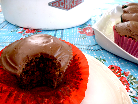 Because it is an Australian recipe, it’s not quite as sweet as American cupcakes and they have a nice tang and silky texture from the buttermilk. My stand mixer has recently bitten the dust so I used my el cheapo hand mixer and it all came together very easily. Then there’s the icing which has a nice depth flavour with addition of cream and brown sugar. In actual fact, these were pretty awesome – which made me wonder why I ever stopped making them in the first place. So, in the public interest, for all those who need to pull together something quickly for a school cake stall, here is the recipe.