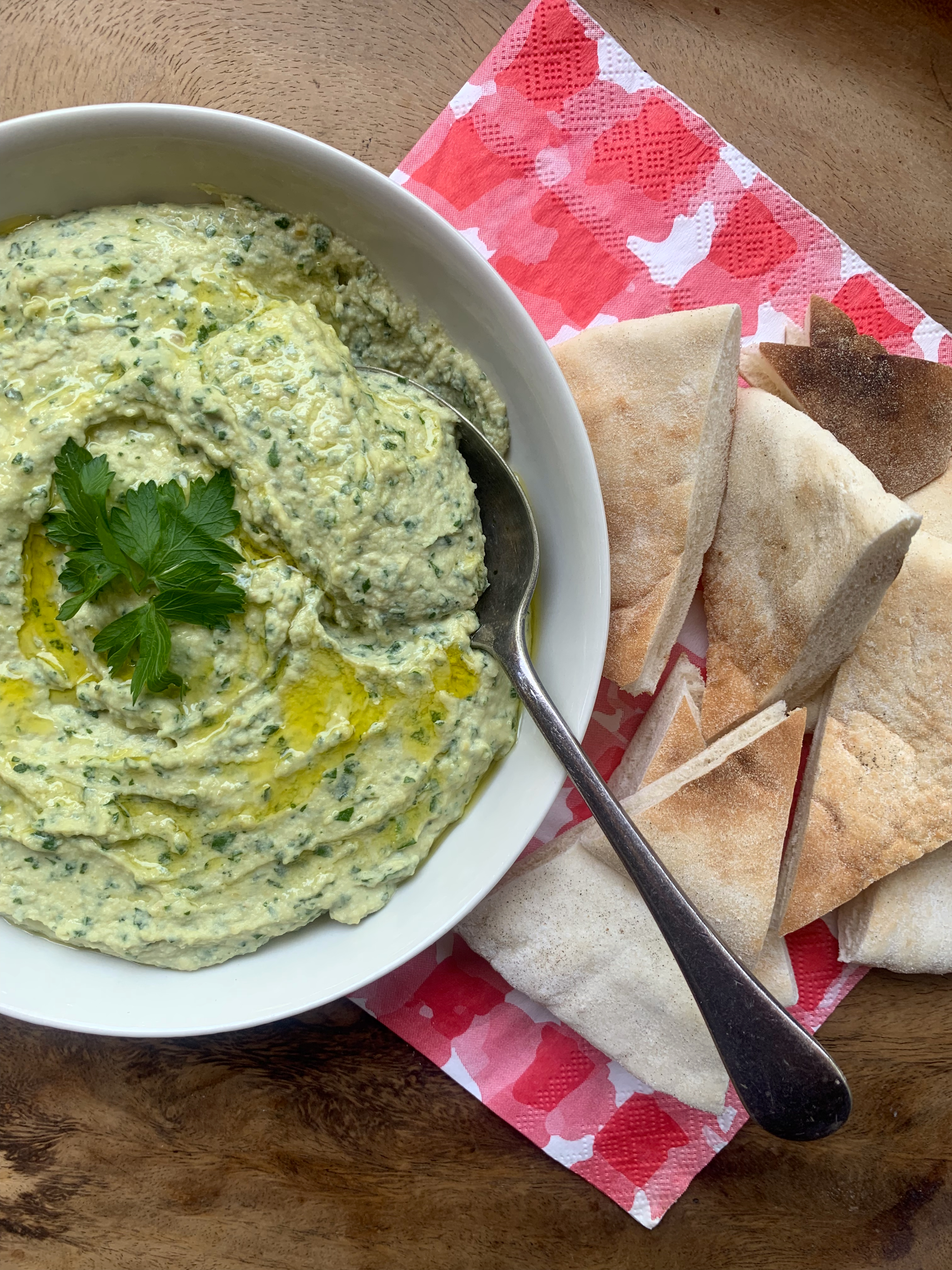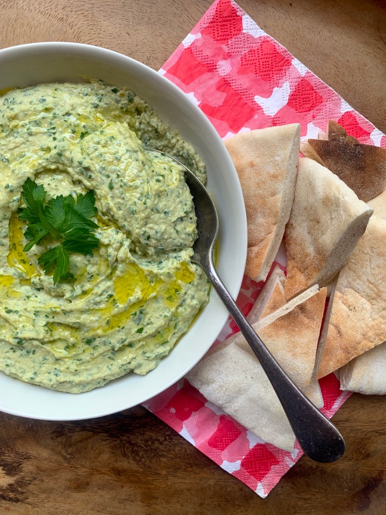 Super quick and awesome green herb hummus