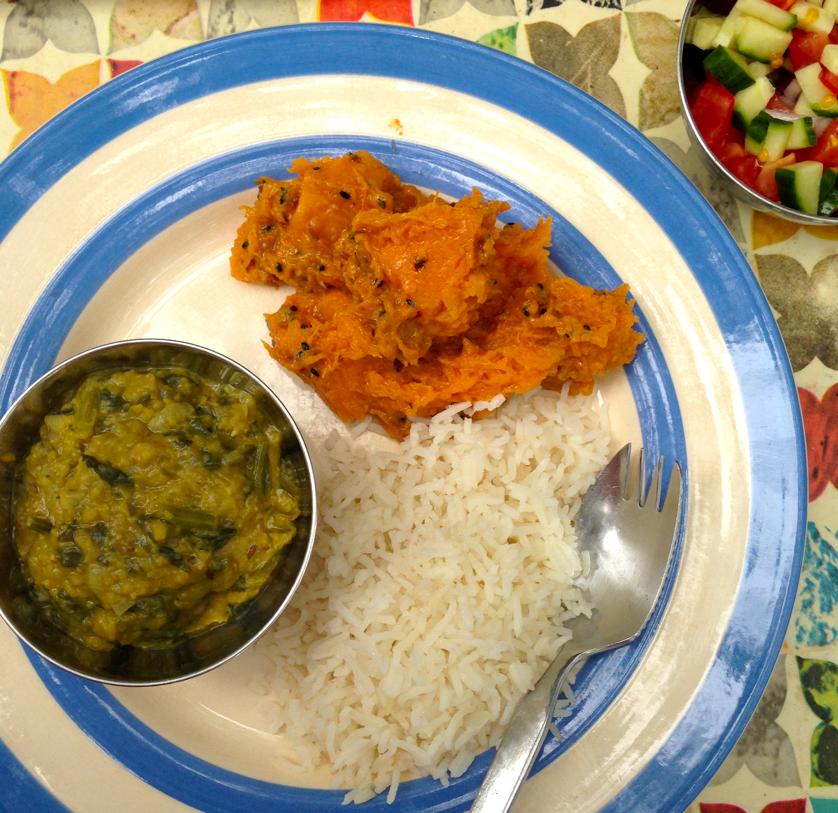 Pumpkin is one one of my favorite vegetables but a lot of Indians I know seem to loathe it – probably because during monsoon season, it is one of the few vegetables available and they get completely sick of it by the time they reach adulthood. I survived a childhood pumpkin glut when my Dad grew a bumper crop in an already oversupplied market in the 1970s. My Dad eventually had to pay to dump a semi-trailer of unsold pumpkins, as well as having our extended family and friends eat our way through a shed full of pumpkins. We ate a lot of pumpkin that year, but I still managed to survive it with my love of pumpkin intact.