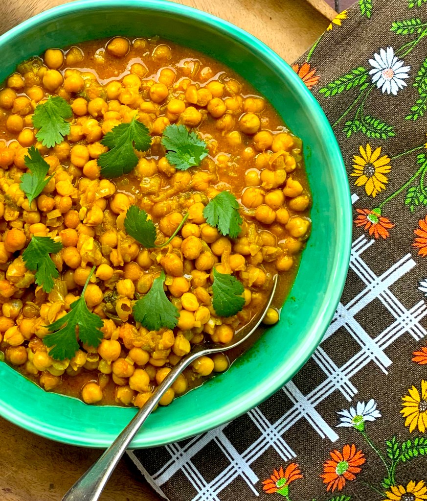 I’ve been making this simple chickpea dish a lot lately from one of my latest cookbook acquisitions Madhur Jaffrey’s Vegetarian India. One of the pantry staples in my vegetarian dinner rotation is the humble can of chickpeas and I’ve used A LOT of cans of chickpeas over the years. This recipe uses the liquid from the can, so I prefer to use organic beans. I’ve just discovered the Coles homebrand organic canned beans are surprisingly good, in fact, they’re actually excellent.