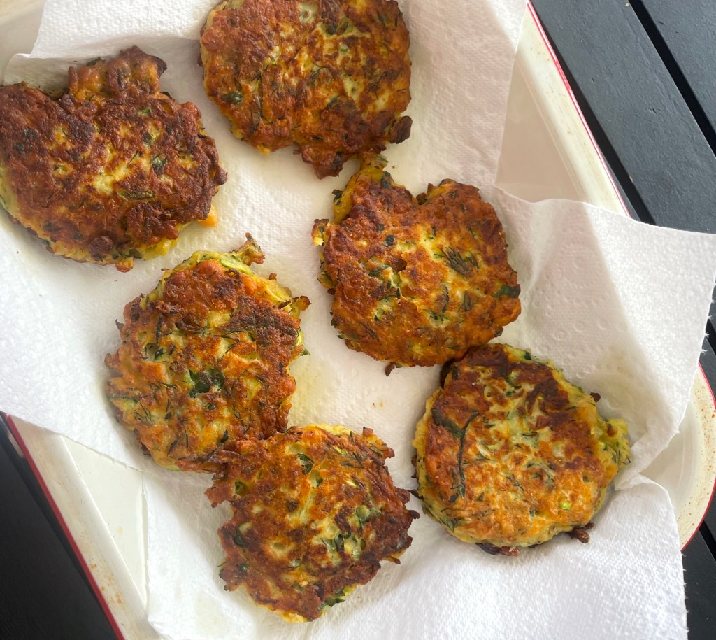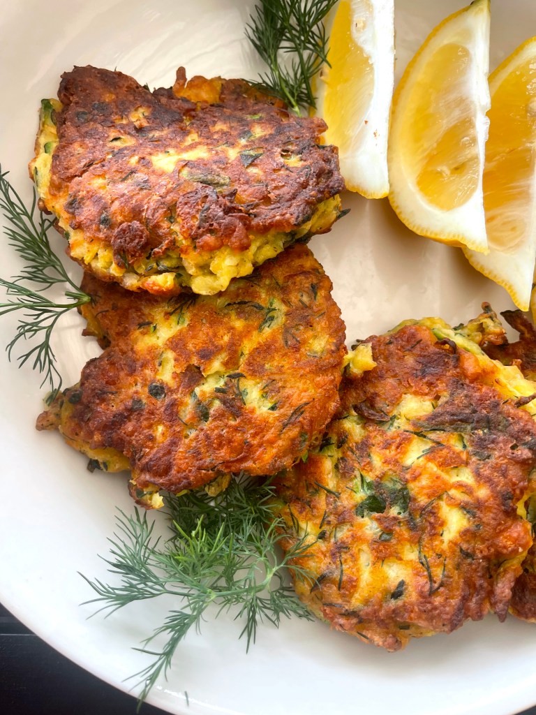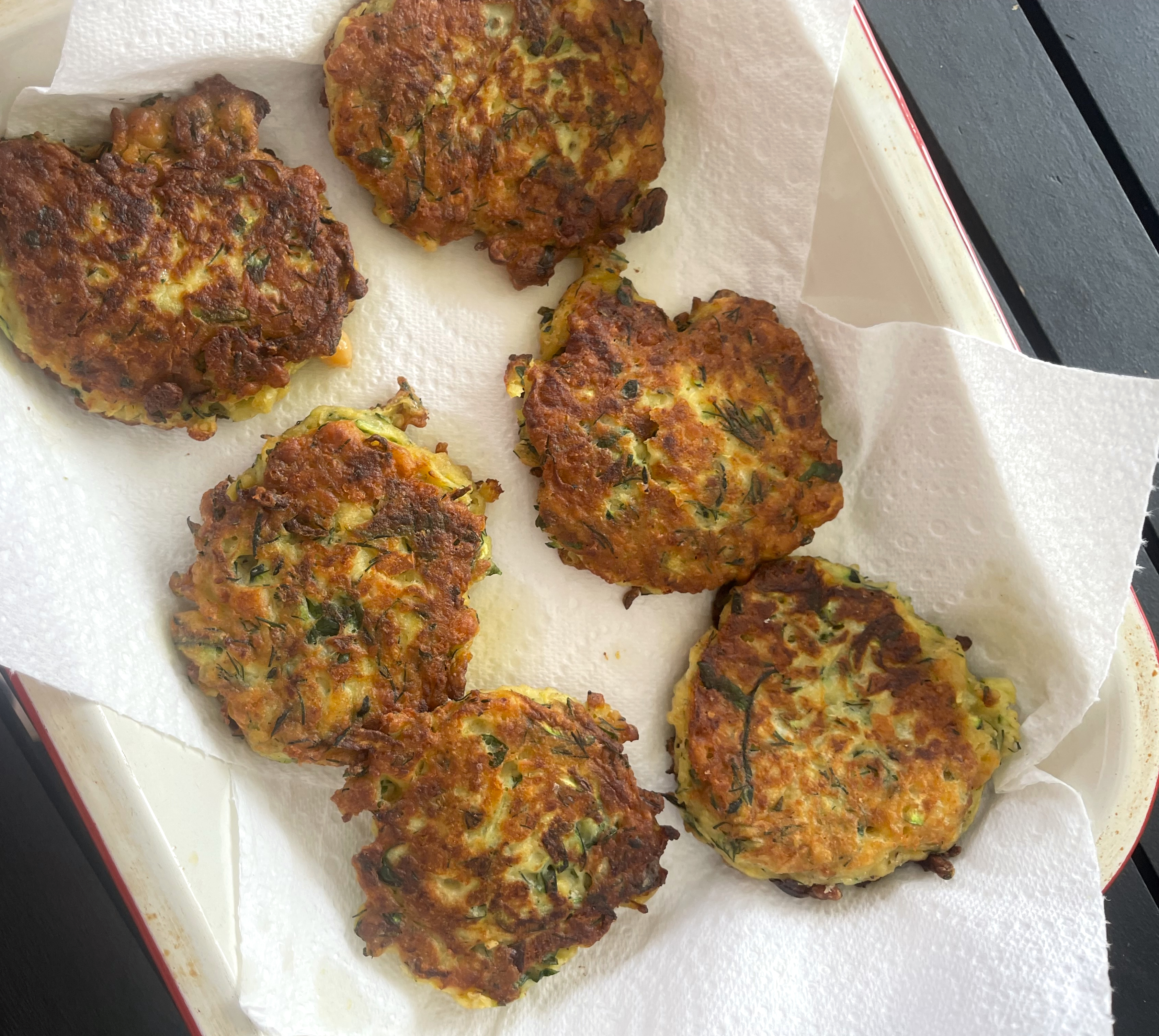 There is something very uber-hausfrau and satisfying about making a really delicious dinner when the cupboard is almost bare but you don’t have to wait for a scarcity event to make these fritters. They are the sort of recipe you can have on regular weeknight rotation. Quick and easy and you can have dinner on the table in no time. They also make excellent lunchbox leftovers the next day which I think is always something to consider for your midweek meal rotations.